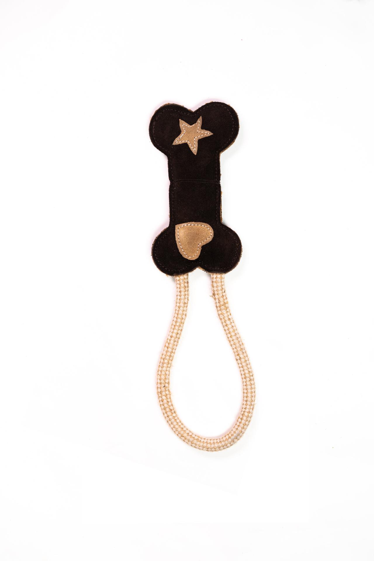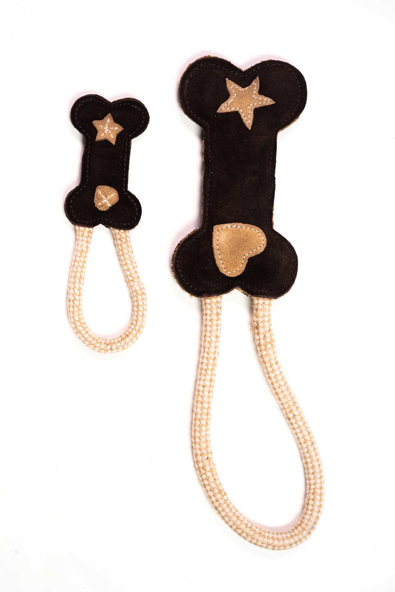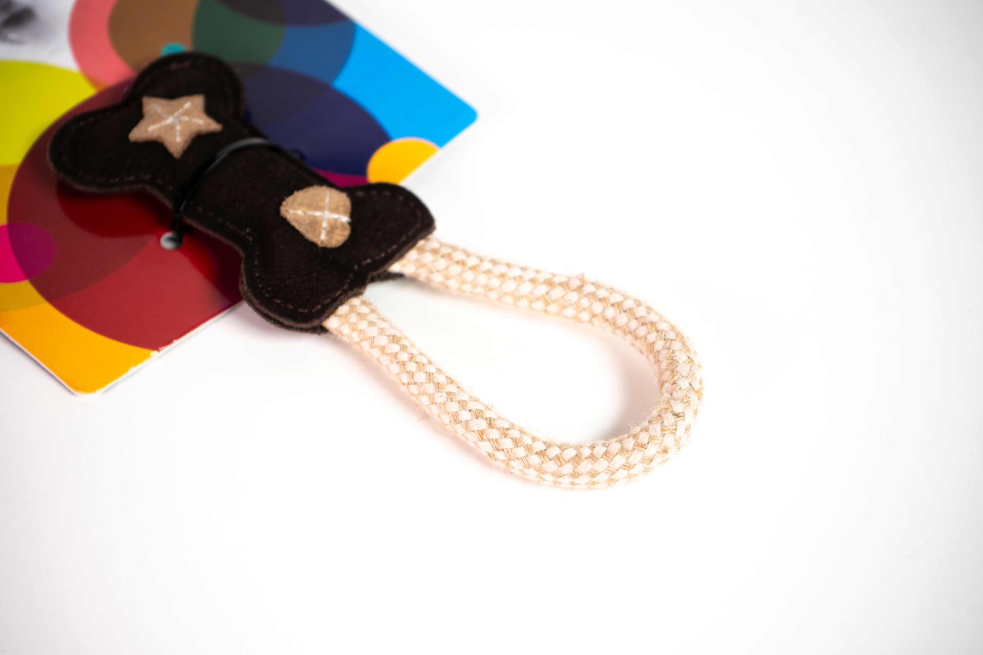 Toss, tug, play or train with these soft and durable handmade Bone design dog toys. Made of Natural Jute, cotton and suede and designed for your dogs ultimate stimulation, interaction and play. Promotes healthy exercise and may help alleviate stress and anxiety in some dogs, Vegetable- based dyes.