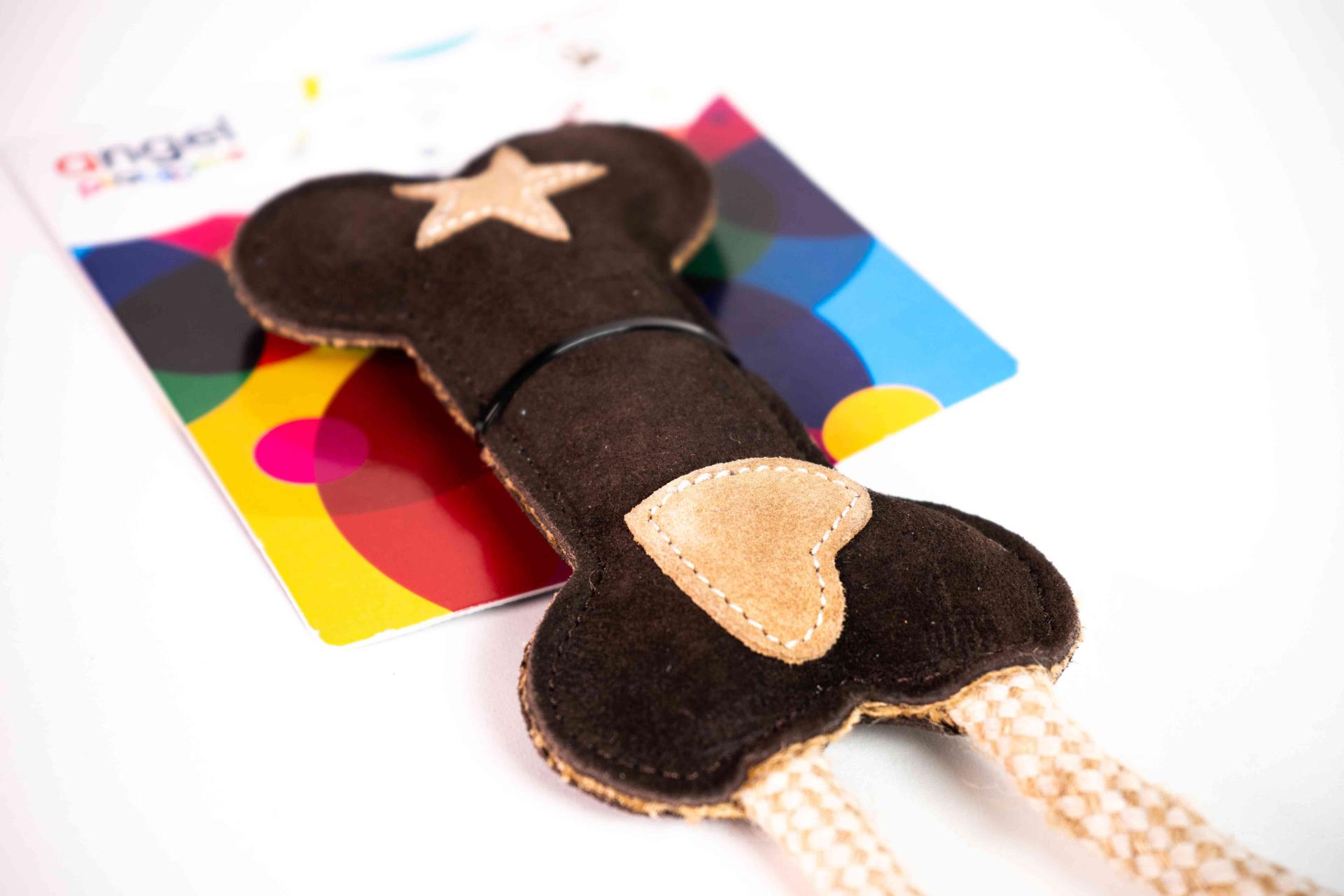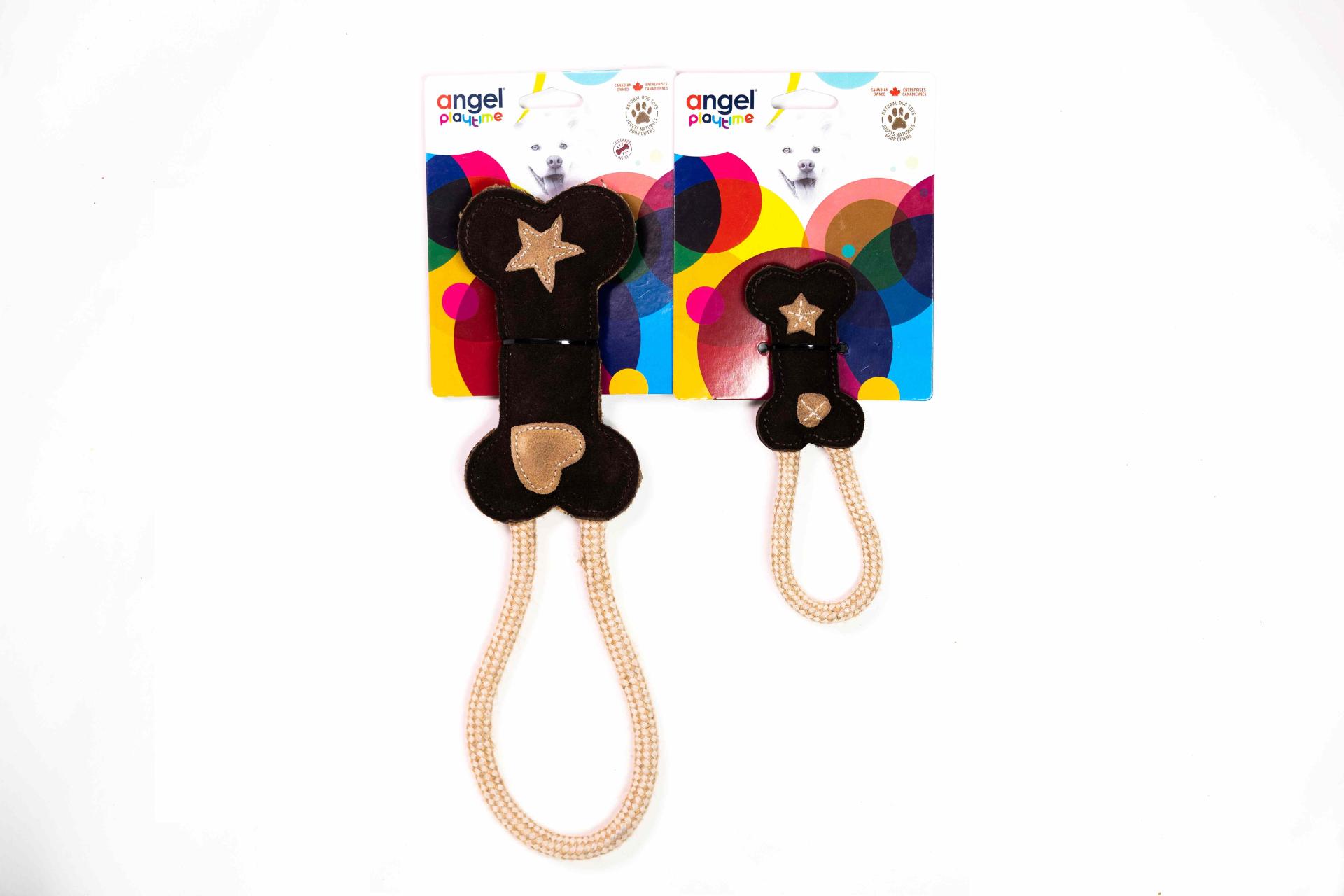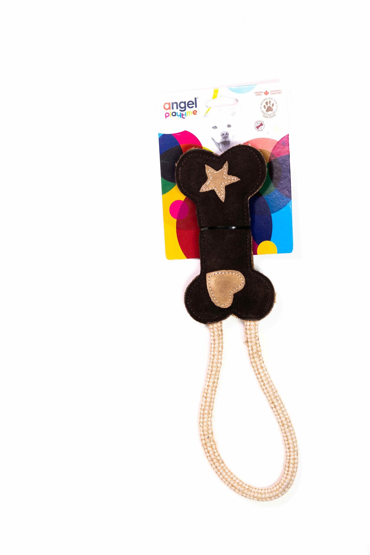 Toss, tug, play or train with these soft and durable handmade Bone design dog toys. Made of Natural Jute, cotton and suede and designed for your dogs ultimate stimulation, interaction and play. Promotes healthy exercise and may help alleviate stress and anxiety in some dogs, Vegetable- based dyes.