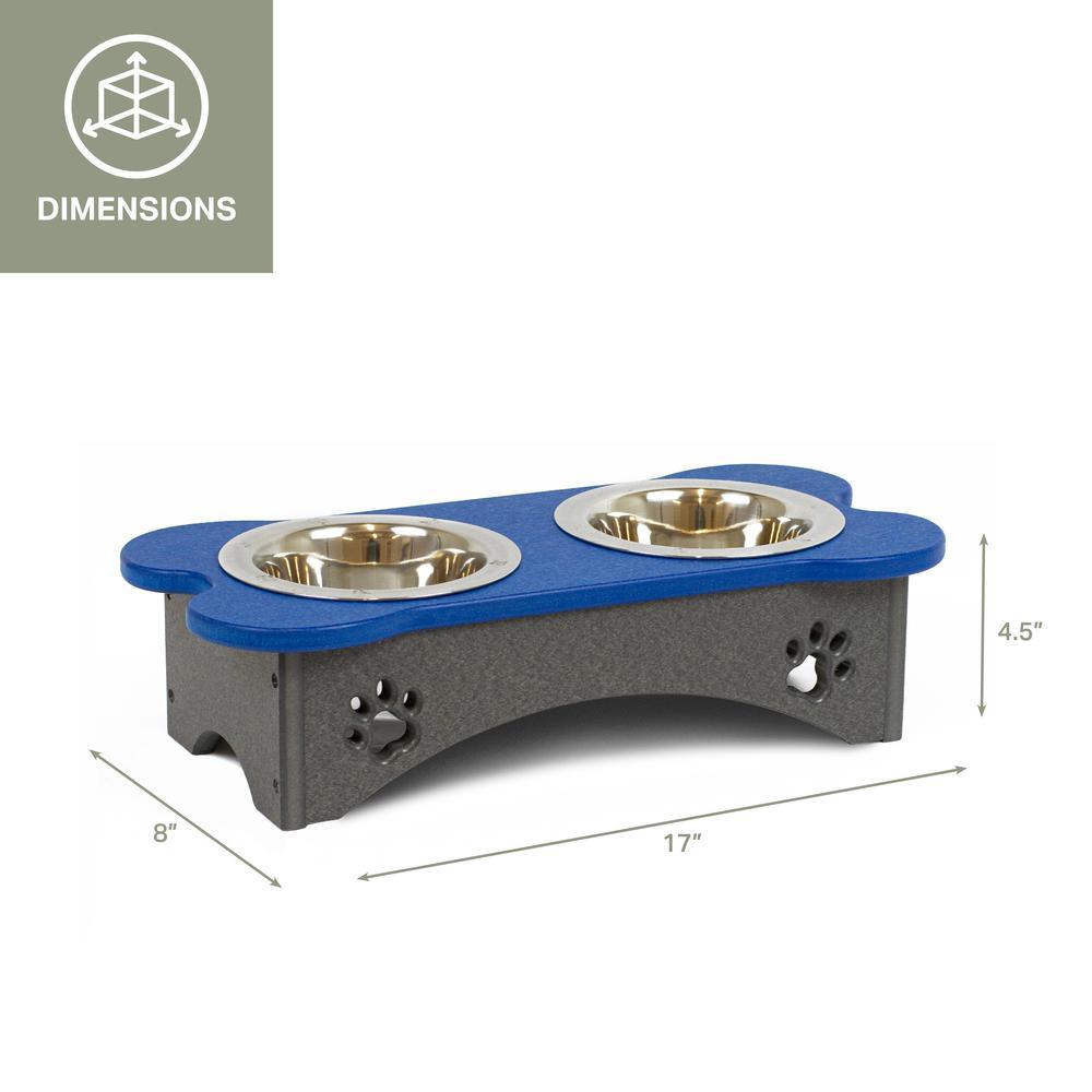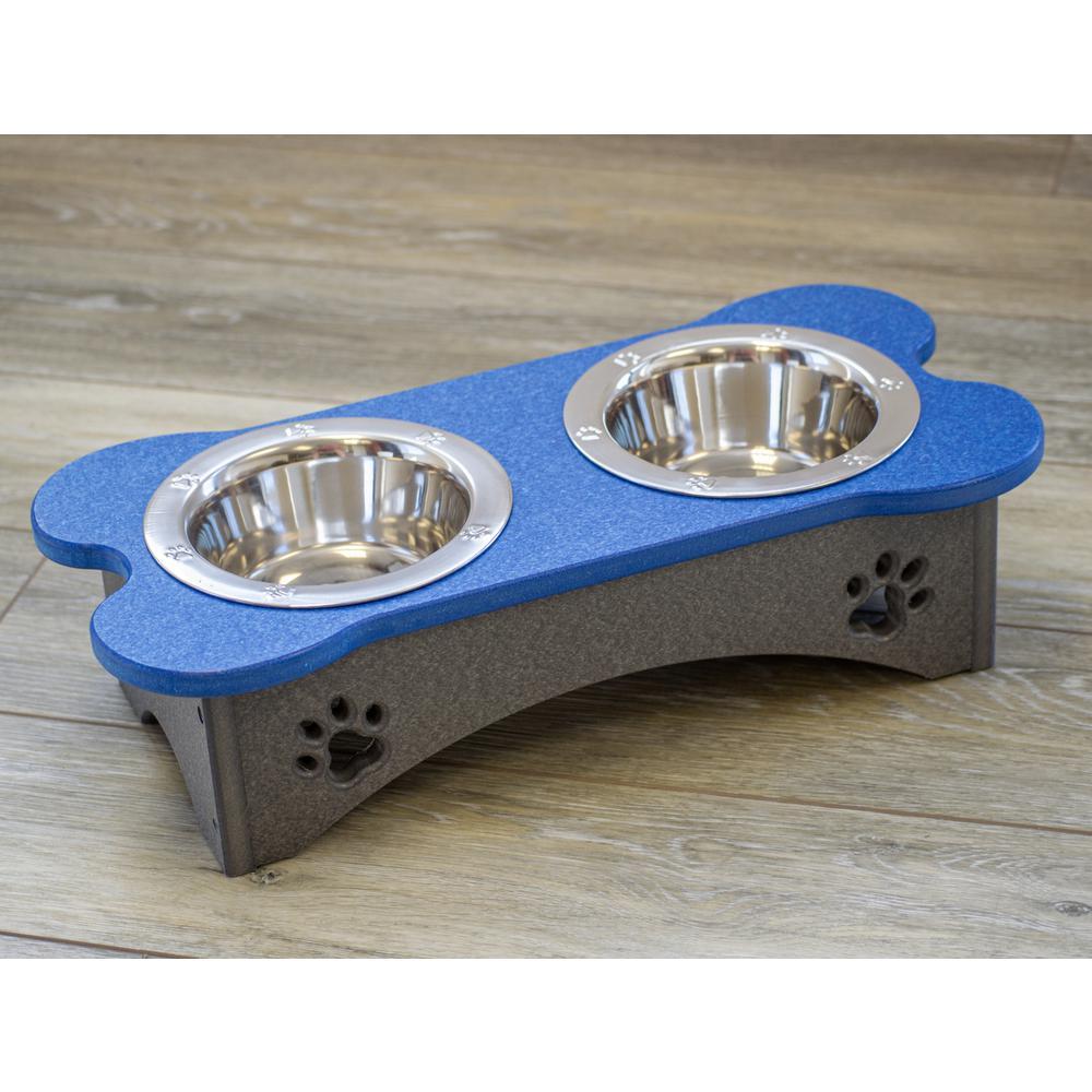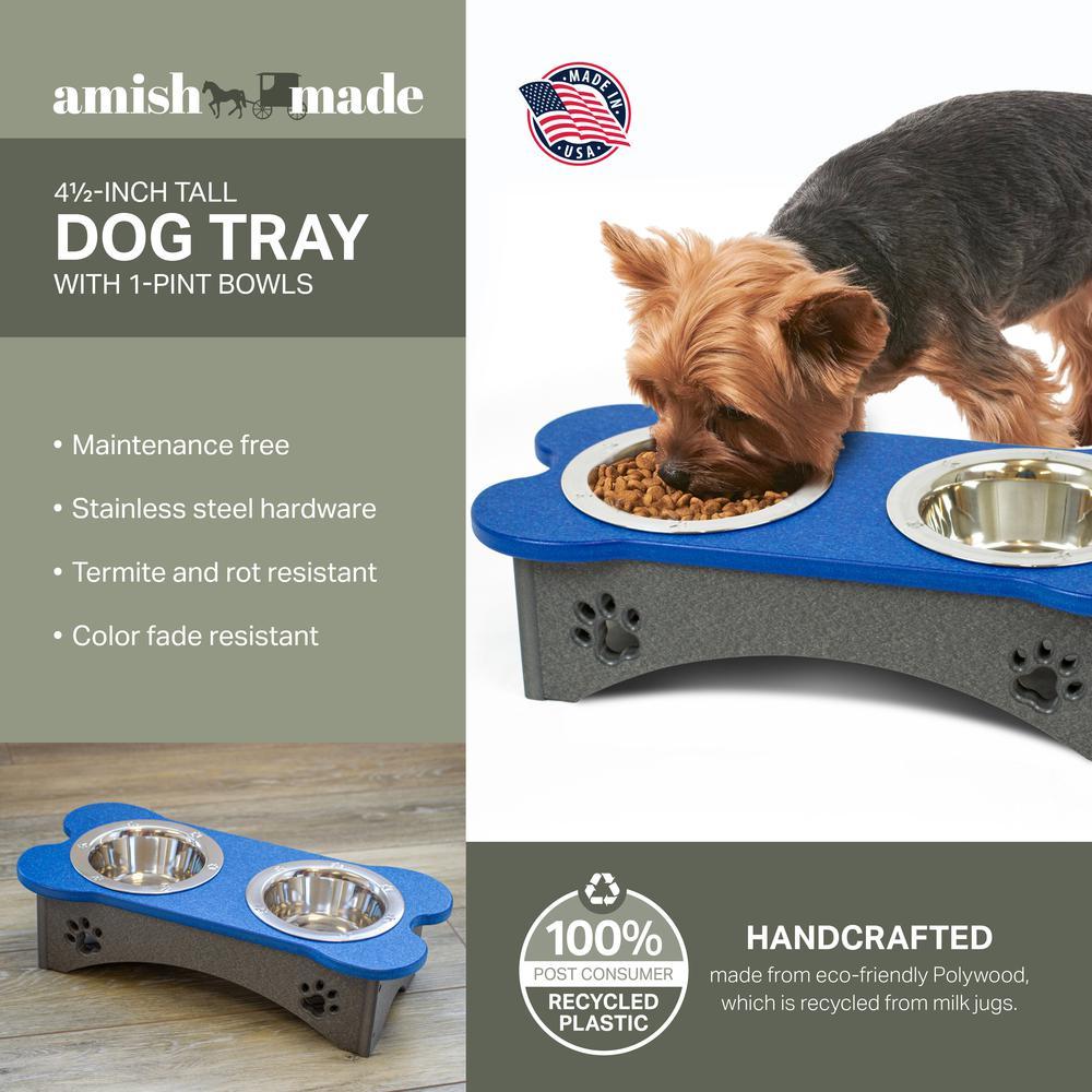 Small dog tray with two stainless steel easy to clean bowls No way around it, poly lumber is just better! It resists splintering, rotting, water and weather damage, and will last a lifetime. Give and give back: all of our dog trays are made from 100% post-consumer recycled plastic so we can do our best to care for the Earth while caring for its creatures. The screws, cables, hinges, and hangers on each of our pieces are made of stainless steel, which means you don’t have to worry about rust or corrosion and you can count on your feeder having superior strength and durability. No mess, no fuss: Each of our dog trays were specifically designed to be no maintenance to you, with your only chore being an easy periodic cleaning Let the sun shine: All dog trays are UV protected, so you don’t have to worry about sun damage, discoloration, warping, cracking, or fading. As clean as can be: The use of Poly Lumber is easy to clean with just soap and water. Their reputation precedes itself, Amish communities have proven their masterful craftsmanship for centuries, and these Amish built DOG TRAYS are no exception! Comes with two stainless steel easy to clean removable bowls