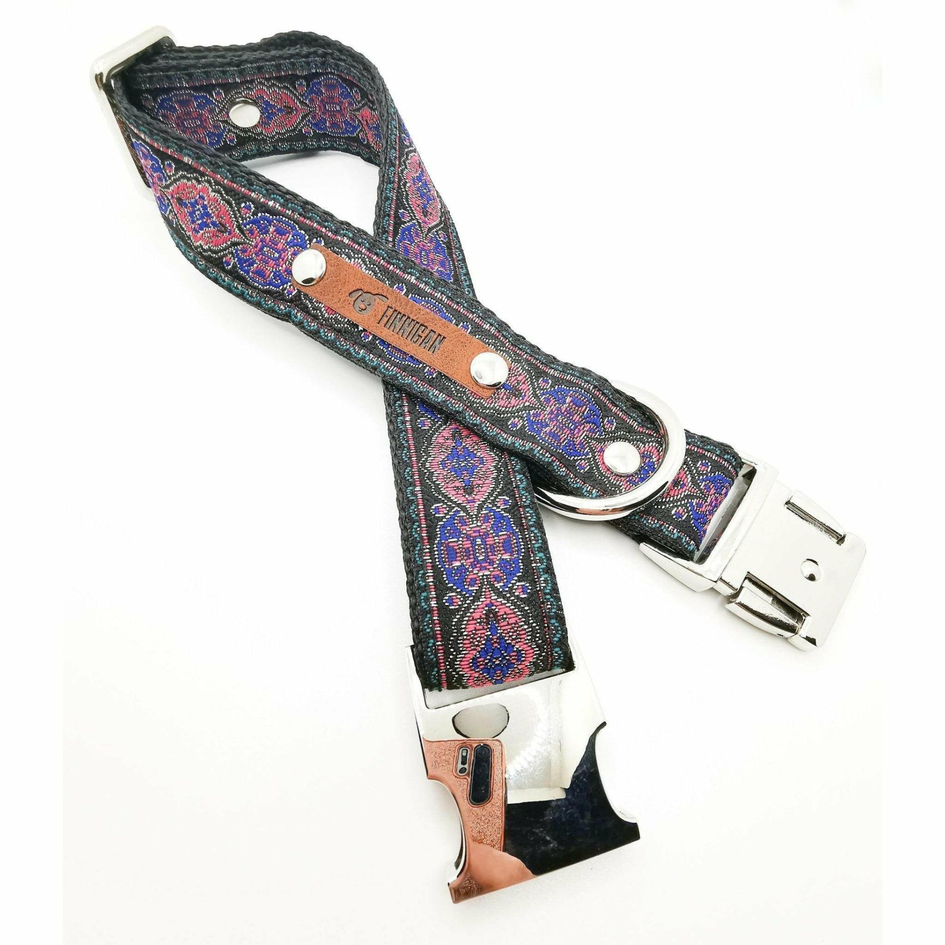 Durable Designer Hand Made Dog Collars which are practical and stylish for the Dog on the Go. This Pattern was designed for a Large Sized Dog Breed and has a width length of 25mm. The Metal Hardware is also 25mm. This Pattern can be made to fit smaller dogs, but please be aware that the Hardwarewill still be 25mm. The adjustable size ensures that each pup gets a perfect fit, while the vibrant pattern is perfect for most color palettes. Constructed from a blend of polyester and polypropylene for maximum strength and durability, this collar will last for years to come.